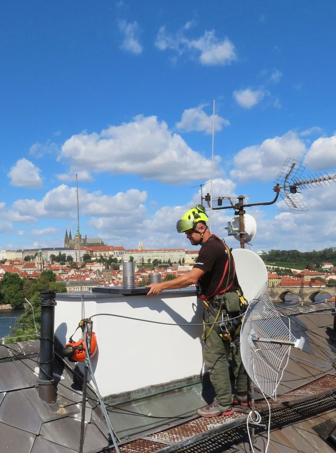 Výškové práce nejen v Praze a okolí. Kvalita, bezpečnost a zkušenosti. Samozřejmostí je platné osvědčení odborné způsobilosti a revize vybavení.