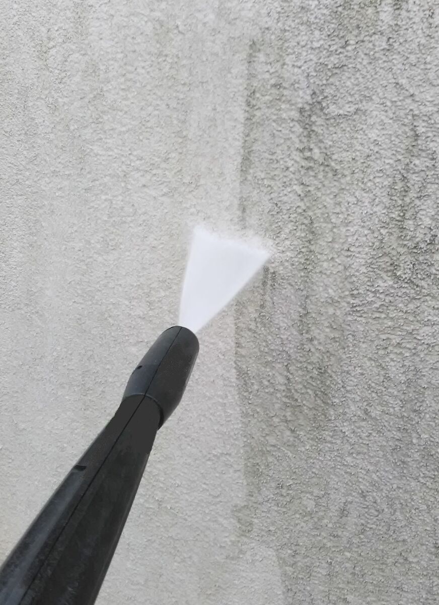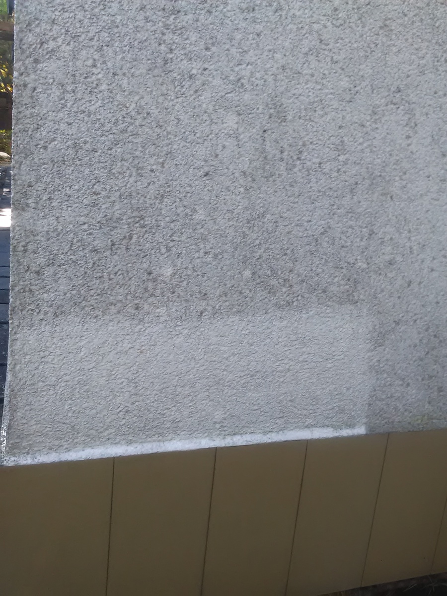 Odstranění řas a plísní ze zateplené fasády. Nátěr přípravkem Sanatop Likvid Profi, mytí tlakovou vodou a preventivní nátěr Sanatop Prevent Fix. Přístup pomocí lanové (horolezecké) techniky. Čistíme též dlažbu. Betonovou lze následně impregnovat pro delší zachování původní barvy.