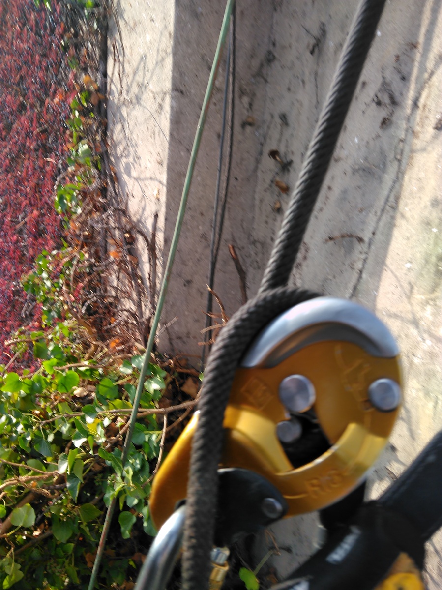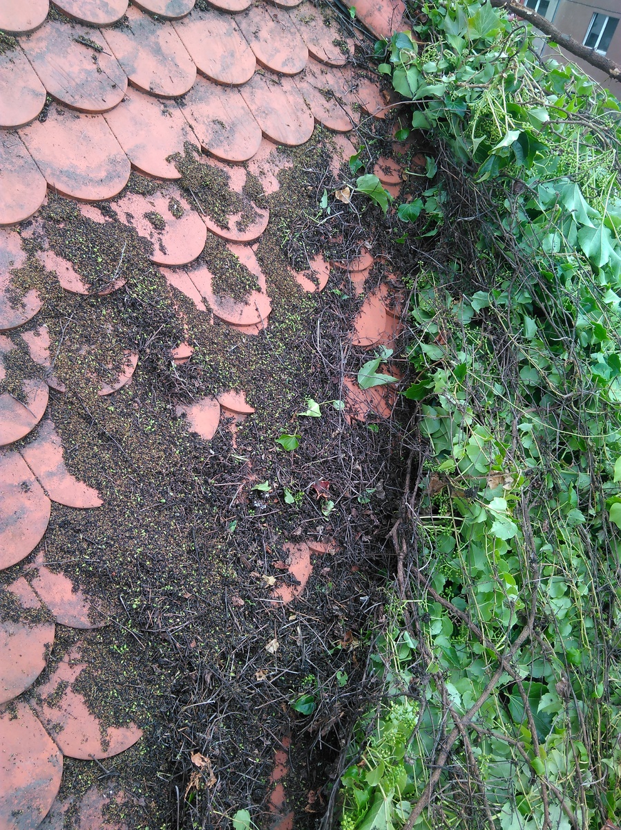 Údržba, zastřižení, odstranění popínavých rostlin z fasády a střechy pomocí lanové (horolezecké) techniky.